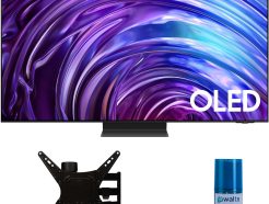 Samsung QN55S95DAFXZA 55 Inch OLED 4K Smart TV with Dolby Atmos with a Walts TV Medium Full Motion Mount for 32-65 Inch Compatible TV’s and Walts HDTV Screen Cleaner Kit (2024)