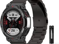 Bands Compatible for Amazfit T-Rex 2 Band Men Metal Adjustable Stainless Steel Cool Wristband Bracelet Accessories Replacement Strap for Amazfit T-Rex 2 Smartwatch