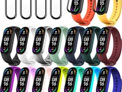 20 Pieces Strap Replacement Compatible with Xiaomi Mi Band 6 / Xiaomi Mi Band 5 / Amazfit Band 5, Bands for Mi Band 5 Bracelet Wristbands Silicone for Mi Fit 5 Straps (16 Colors + 4 Screen Protector)