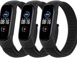 Amzpas Nylon Bands for Xiaomi Mi Band 5/ Mi Band 6, 3 Pack Soft Cloth Watch Straps for Amazfit Band 5/ Band 6, Adjustable Breathable Replacement Wristbands for Women Men