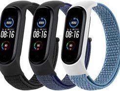 Amzpas Nylon Bands for Xiaomi Mi Band 5/ Mi Band 6, 3 Pack Soft Cloth Watch Straps for Amazfit Band 5/ Band 6, Adjustable Breathable Replacement Wristbands for Women Men