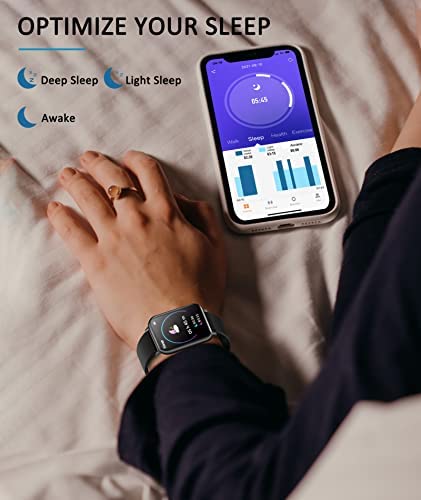 【24/7 Monitor Your Health】:24/7 track your heart rate and adopt advanced HR sensors to feel your pulse. Help you know your daily fluctuations better. The sleep monitor can record your sleep status (deep, light, and awake). By the historical data in the app to analyze your sleep quality and optimize your sleep to get a healthy lifestyle.