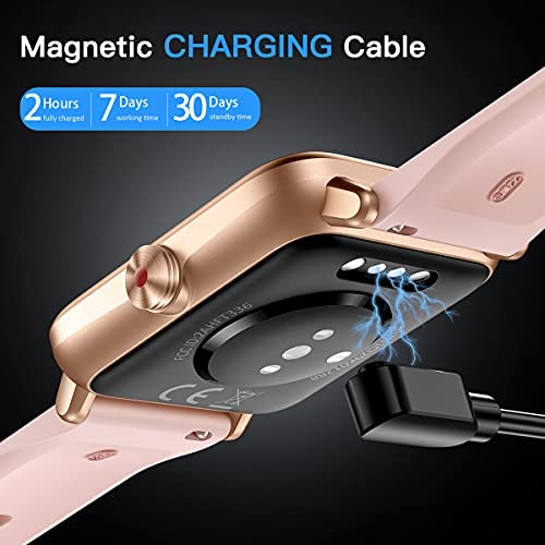 【Long-Lasting Battery & More Practical Tools】Large capacity and low power consumption design offers longer endurance. It comes with a magnetic charging USB cable, One full charge (2 hours) supports 7 days of working time and 35 days of standby time. New features with many practical tools, such as alarm clock, weather forecast, drink water reminder, sedentary reminder, stopwatch, timer, music control, find your phone, women’s menstrual cycle, adjustable brightness, etc
