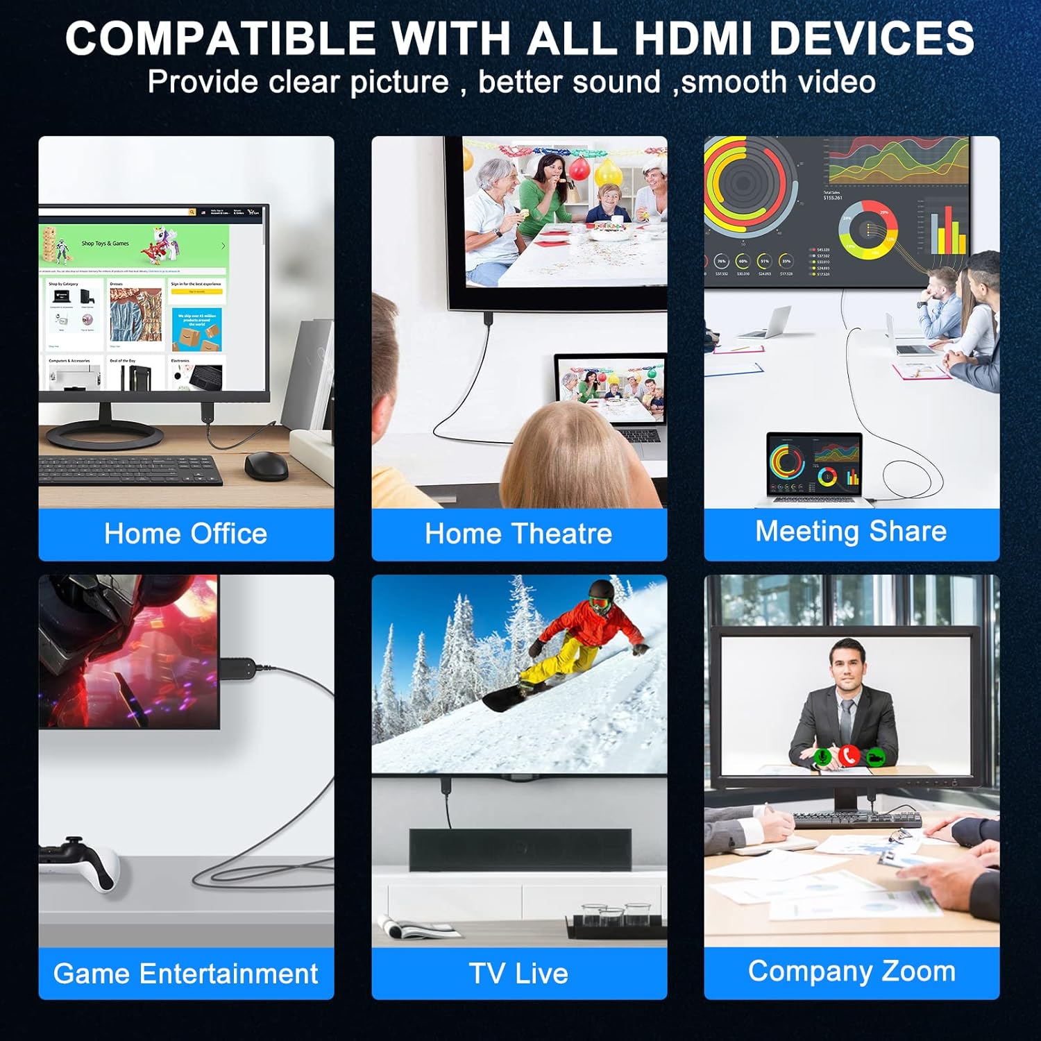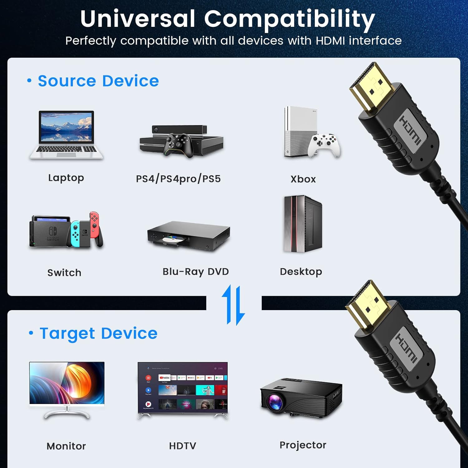 【Widely Compatible】 compatible with regular devices with HDMI ports. Such as laptops, Apple TV, game consoles (like Ps4 Pro, PS5 and xbox series x), soundbars, 4K blu-ray player, receivers, Mac Mini, etc.
