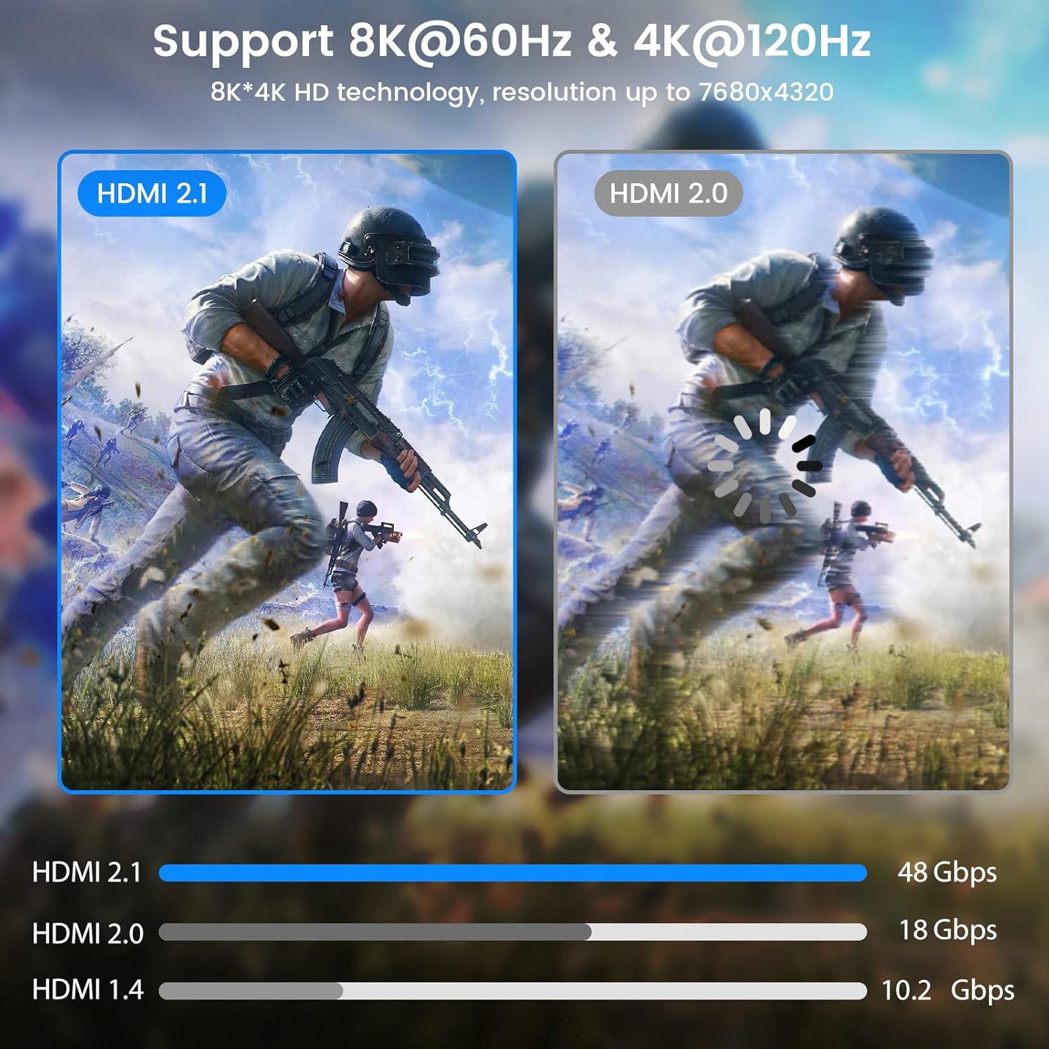 HDMI 8K Cable, 6.6FT HDMI 2.1 Cord Supports 48Gbps 4K@120Hz/144Hz Compatible with Xbox X/S, Ps4 Pro, PS6, Soundbar, Apple TV, Samsung/LG OLED TV, Laptop, Monitor/Roku Ultra