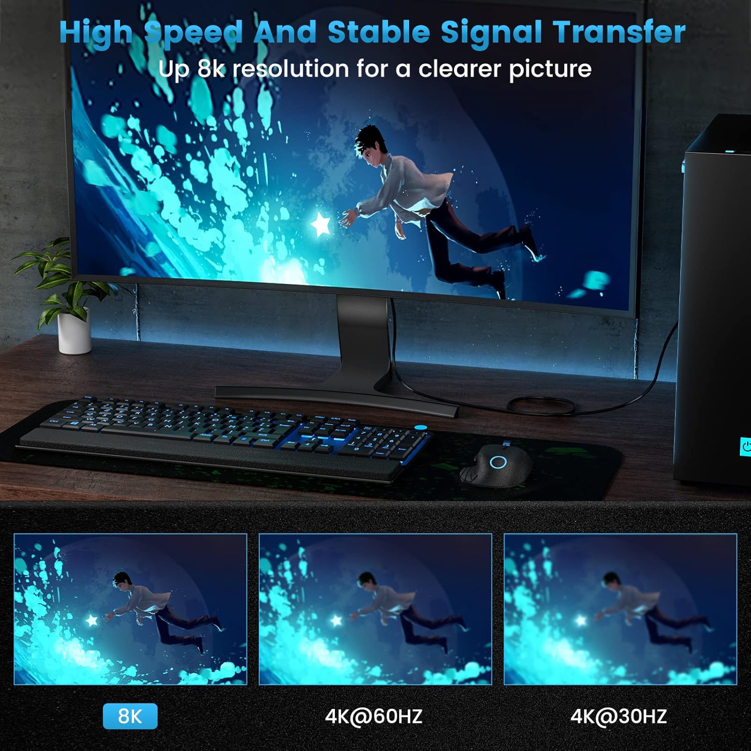 8K HDMI to HDMI extension cable supports bidirectionally signal to transmit. Compatible with devices that have HDMI ports, like LG OLED TV, Roku Ultra, Nakamichi sound bar, Apple TV, 4K OLED tv, PS5, 4K KVM, PS5 to my avr receiver, 4k monitor, and Dell laptop, MacBook Air, Ps4 Pro, Xbox series x, 4K Blu ray player.