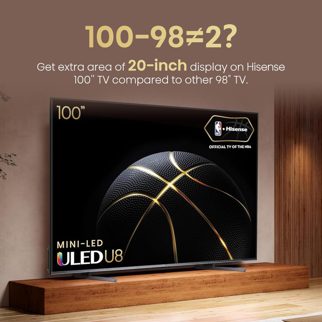 Hisense 100-Inch Class U8 Series Mini-LED ULED 4K UHD Google Smart TV (100U8K) – QLED, 480 Motion Rate, 144Hz Game Mode Pro, Dolby Vision IQ, HDMI 2.1, Alexa Compatibility, 2.1.2 Multi-Channel Audio
