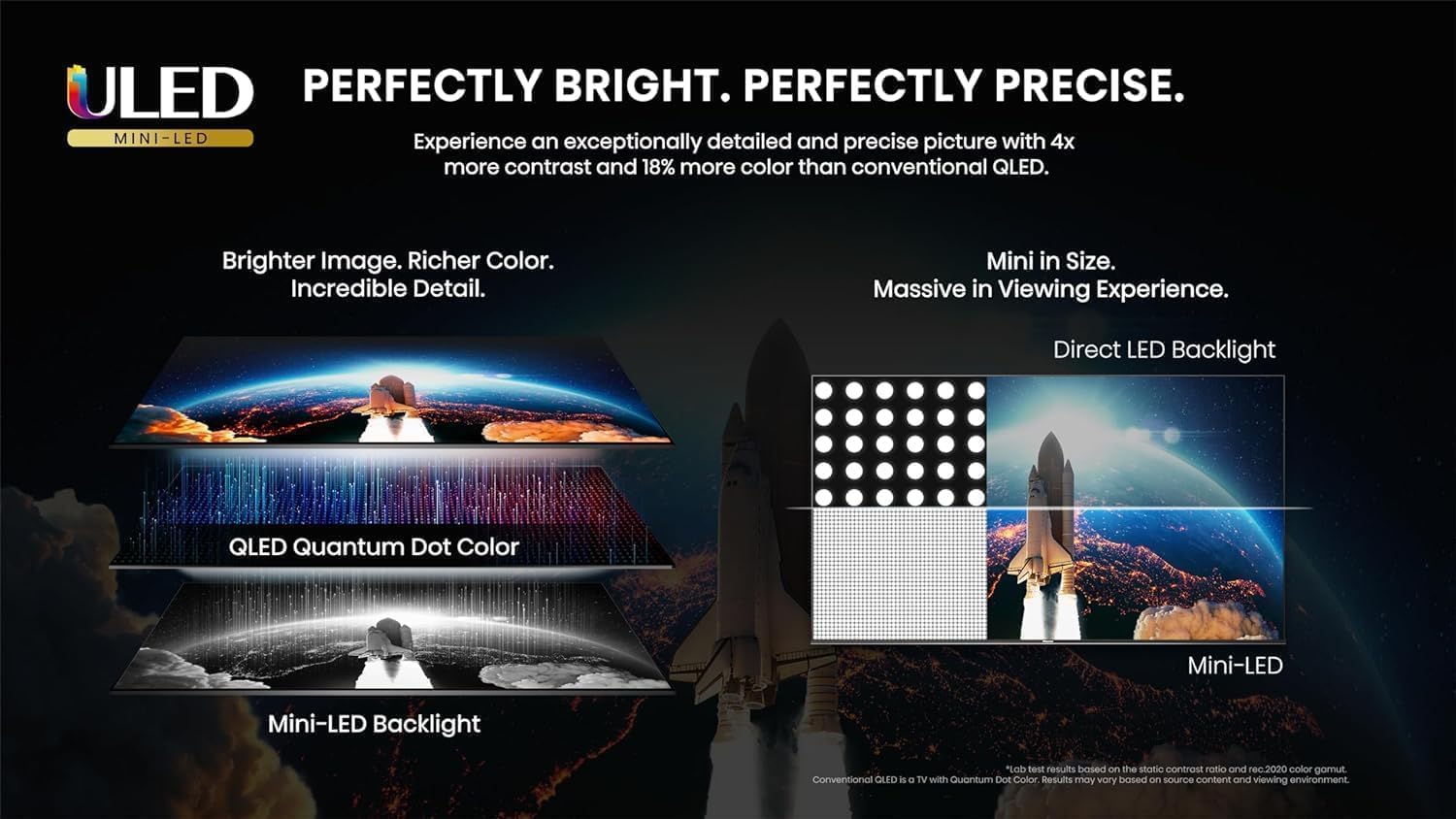 MINI-LED & FULL ARRAY LOCAL DIMMING: Mini-LED is the latest breakthrough in backlighting technology. By utilizing LED’s that are significantly smaller than traditional LED’s we are able to use many more LED’s to create a bright image that distributes the light more evenly for a uniform image across the screen