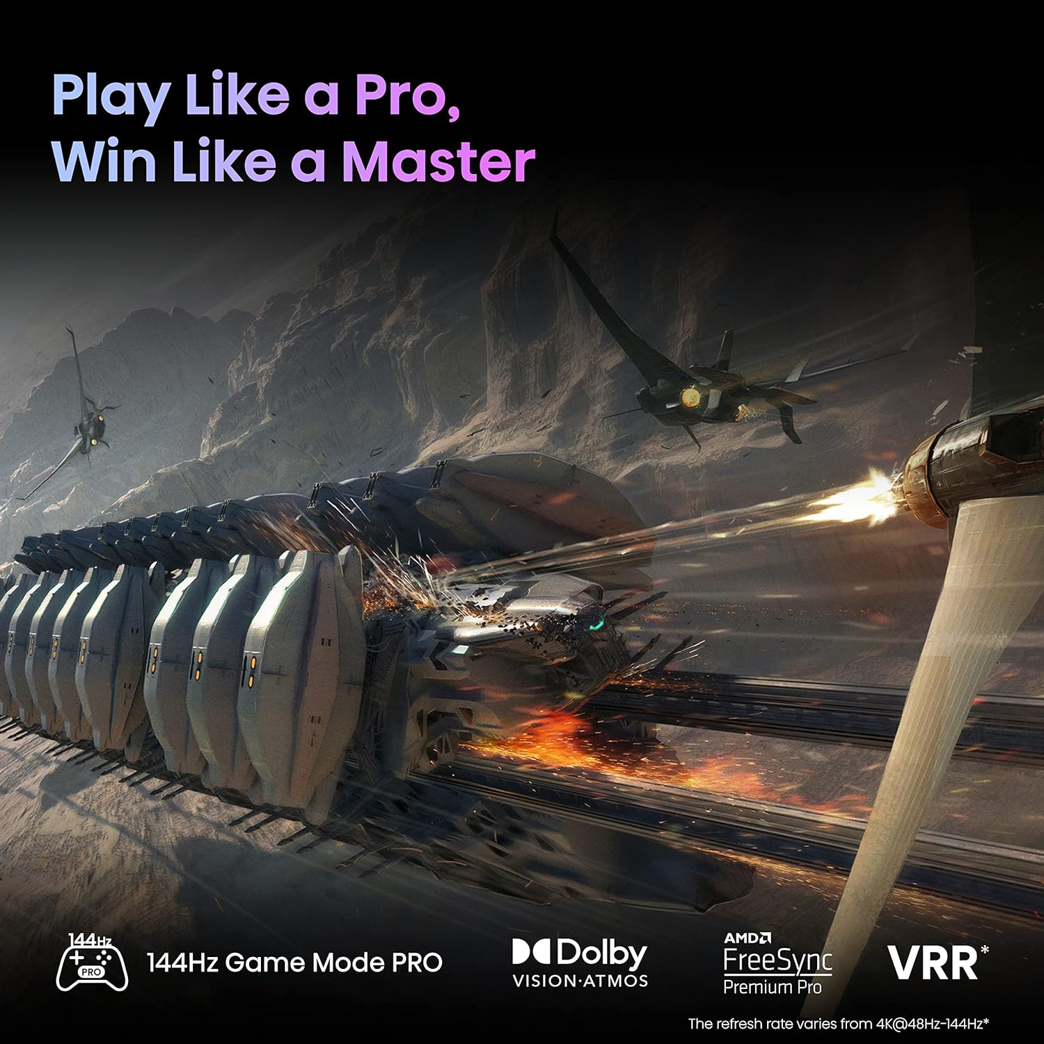 144HZ GAME MODE PRO: All the most advanced gaming tech, all in this TV. HDMI 2.1 inputs recognize gaming sequences to automatically adjust settings for smooth, uninterrupted play. The automatic low-latency mode (ALLM), 144Hz variable refresh rate (VRR) and FreesSync Premium Pro minimize input lag, screen jitter, and frame tearing
