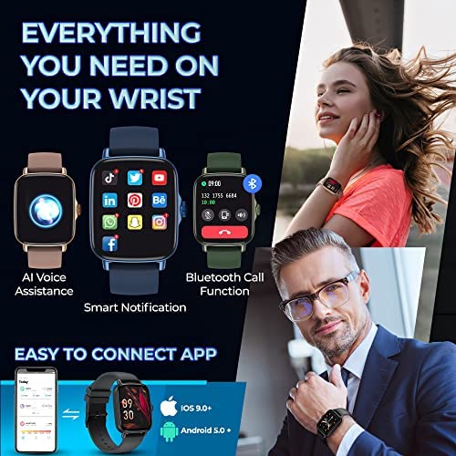 CONVENIENCE AT YOUR WRIST: This fit watch is Compatible with Android phone and iPhone devices, seamlessly pair your men and women’s smart watch with your mobile for instant access to call and message notifications, health reminders and AI voice technology.