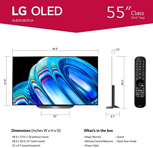 LG 55-Inch Class OLED B2 Series Alexa Built-in 4K Smart TV, 120Hz Refresh Rate, AI-Powered 4K, Dolby Vision IQ and Dolby Atmos, WiSA Ready, Cloud Gaming (OLED55B2PUA, 2022) (Renewed)