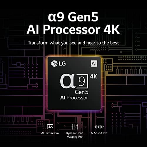 A9 GEN5 AI PROCESSOR 4K: Make the impossible possible with our latest a9 Gen5 AI Processor 4K, engineered exclusively for LG OLED to automatically adjust your settings to improve picture and sound qualities based on whatever you’re watching