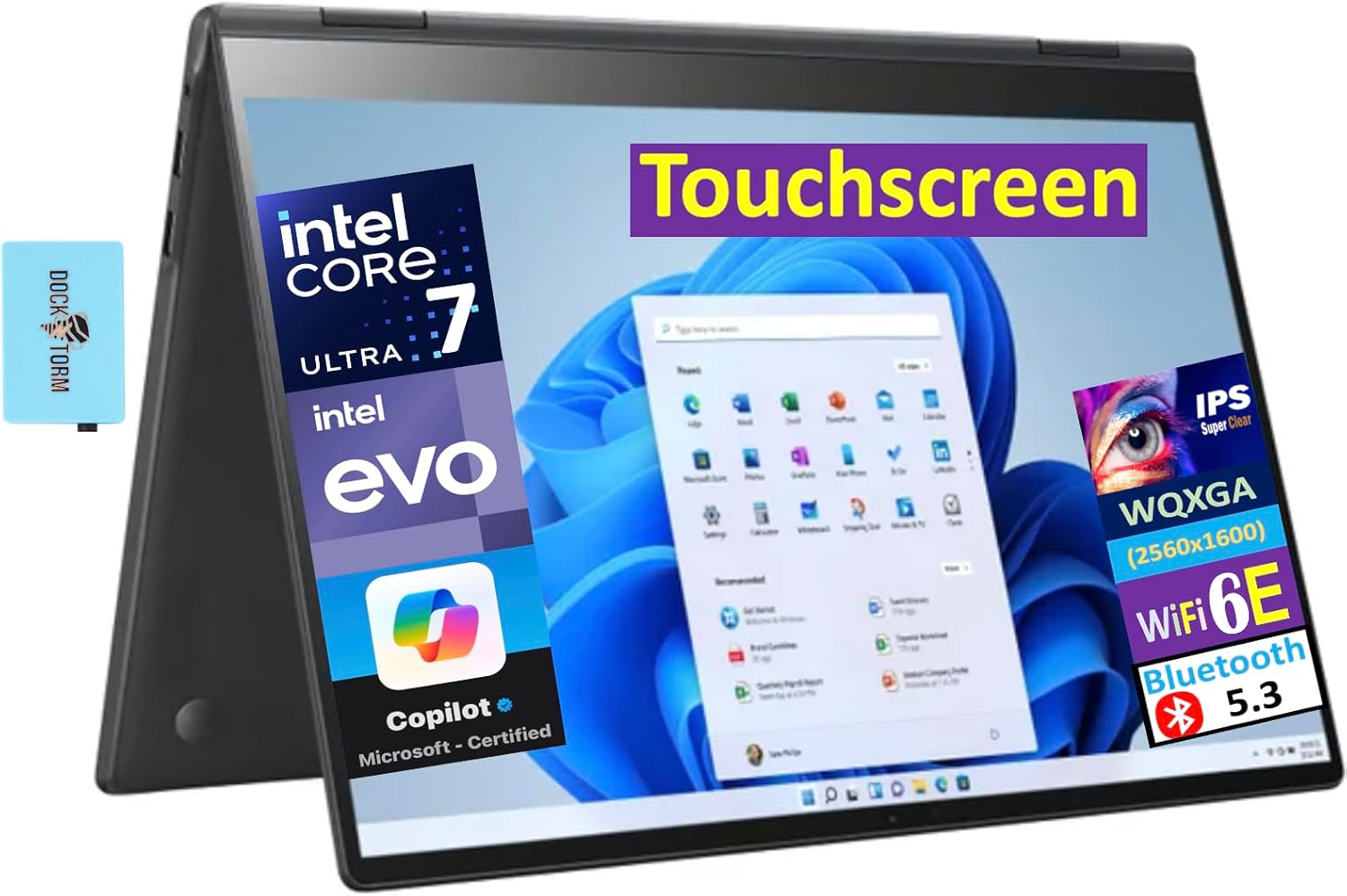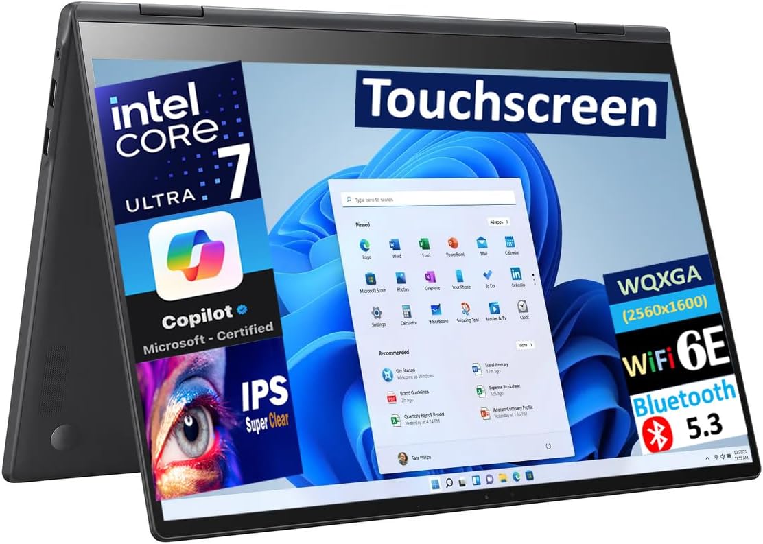LG Gram Pro 2-in-1 Laptop 16.0″ Touchscreen 144Hz IPS 2.5K Display (Intel Evo Edition Ultra 7-155H (Beats i7-1360P), 32GB LPDDR5X, 2TB SSD, Copilot, WiFi 6E, Win11P) w/DKZ USB Port Expander