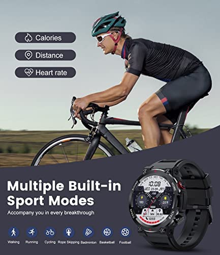 Military Smartwatch Men 400 mAh Outdoor Sport Activity Fitness Tracker Bluetooth Answer Call 1.39″ Touchscreen Heart Rate Sleep Monitor Black Stainless Steel Male Smart Watch for iOS Android Phone