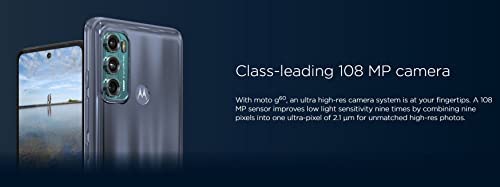 Want the Moto G that brings you the best new features first? With Moto G60, you got it. Snap pics that stun with a class-leading 108 MP ultra high-res camera. Go farther with a 6000 mAh battery that can go 54 hours on a single charge. Plus, enjoy impressive performance from a Qualcomm Snapdragon 732G processor and 4 GB of RAM, and a gorgeous 6.8” display with a lightning-fast 120 Hz refresh rate. 6.8” 120 Hz display with HDR10: Your films, games, and photos will come alive with vivid, true-to-life colours on the 6.8″ Max Vision FHD+ display with HDR10. And with a 120 Hz refresh rate2 that’s twice as fast as other smartphones, lag is a thing of the past. Class-leading 108 MP camera: With Moto G60, an ultra high-res camera system is at your fingertips. A 108 MP sensor improves low light sensitivity nine times by combining nine pixels into one ultra-pixel of 2.1 μm for unmatched high-res photos. Qualcomm 732G processor + 4 GB RAM: The Qualcomm Snapdragon 732G processor and 4 GB RAM give you the speed you need. Graphics render incredibly fast and photos and videos are sharper and more vivid. 6000 mAh battery + TurboPower charging: Feel the freedom of going multiple days on a single charge with a massive 6000 mAh battery. Plus, get a quick boost of power in just minutes with TurboPower charging.