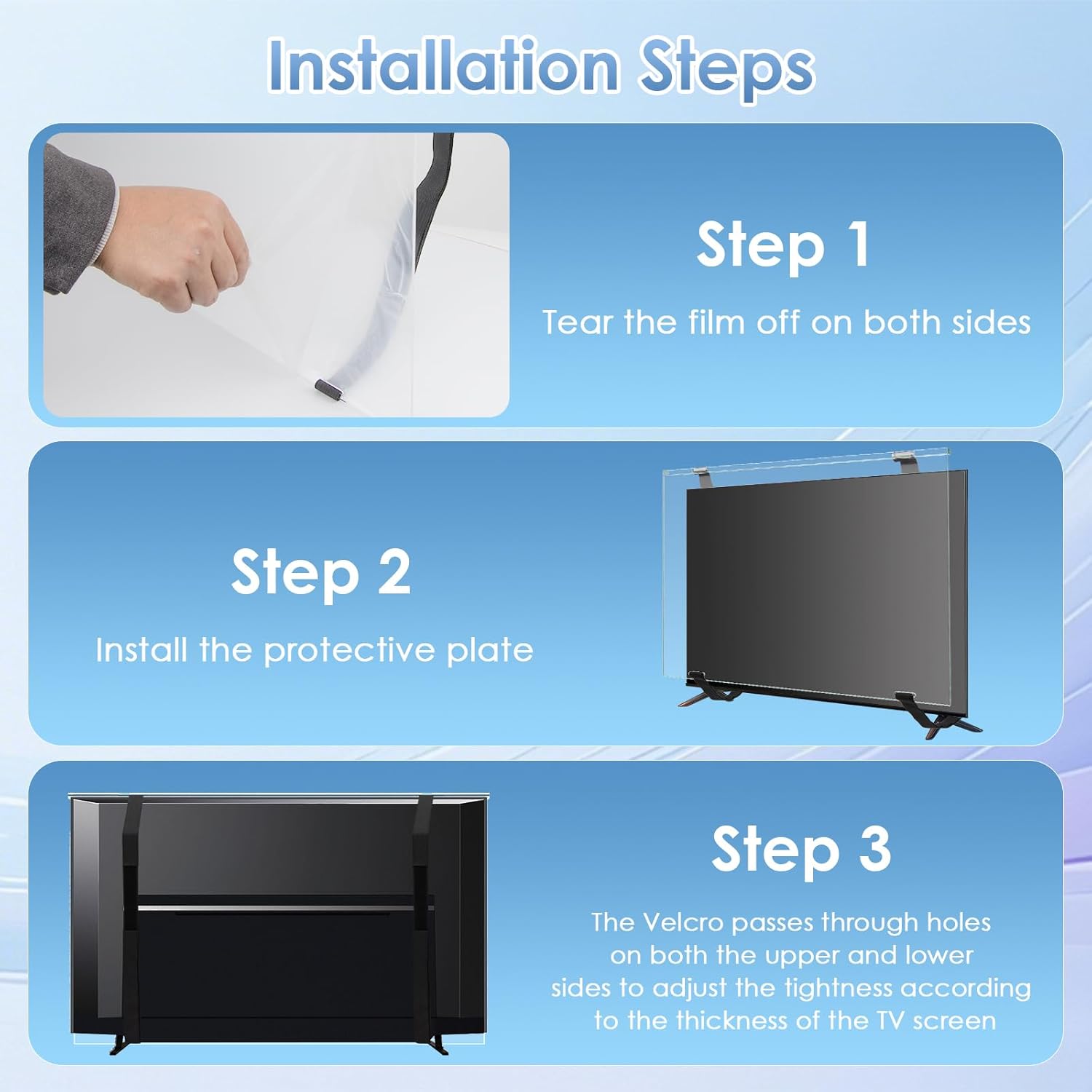 Easy to Install & Clean: This 65-inch TV screen protector comes with two wide straps and a protruding acrylic edge at the top for easy installation above the TV screen. No specialized skills are required. Cleaning is also a breeze; simply wipe gently with a soft cloth to keep the screen looking like new.