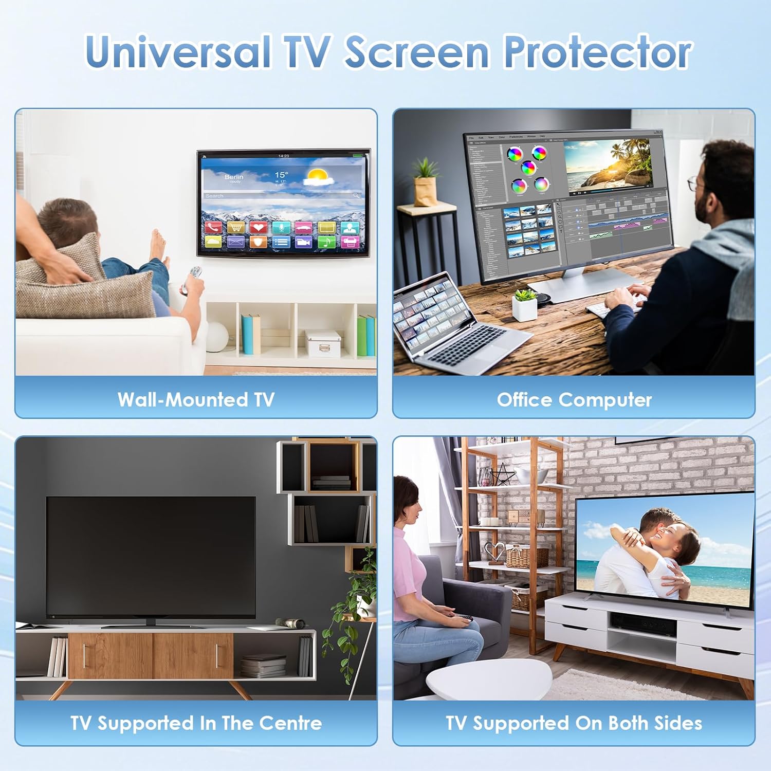 Wide Compatibility: The Ninonly acrylic TV screen protector is designed to be widely compatible with various brands and models of 65-inch TVs. It supports point-supported, two-point-supported, wall-mounted TVs, and office computer monitors. Ideal for families with children, pets, hotels, schools, hospitals, and other institutions.