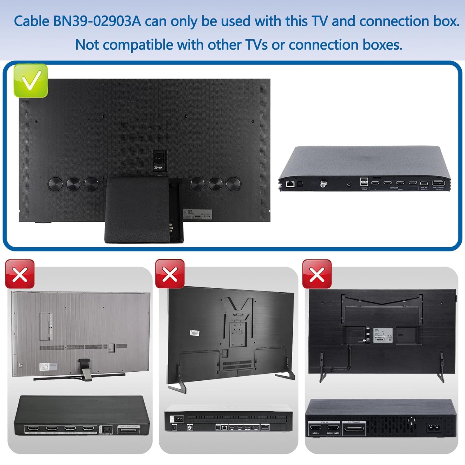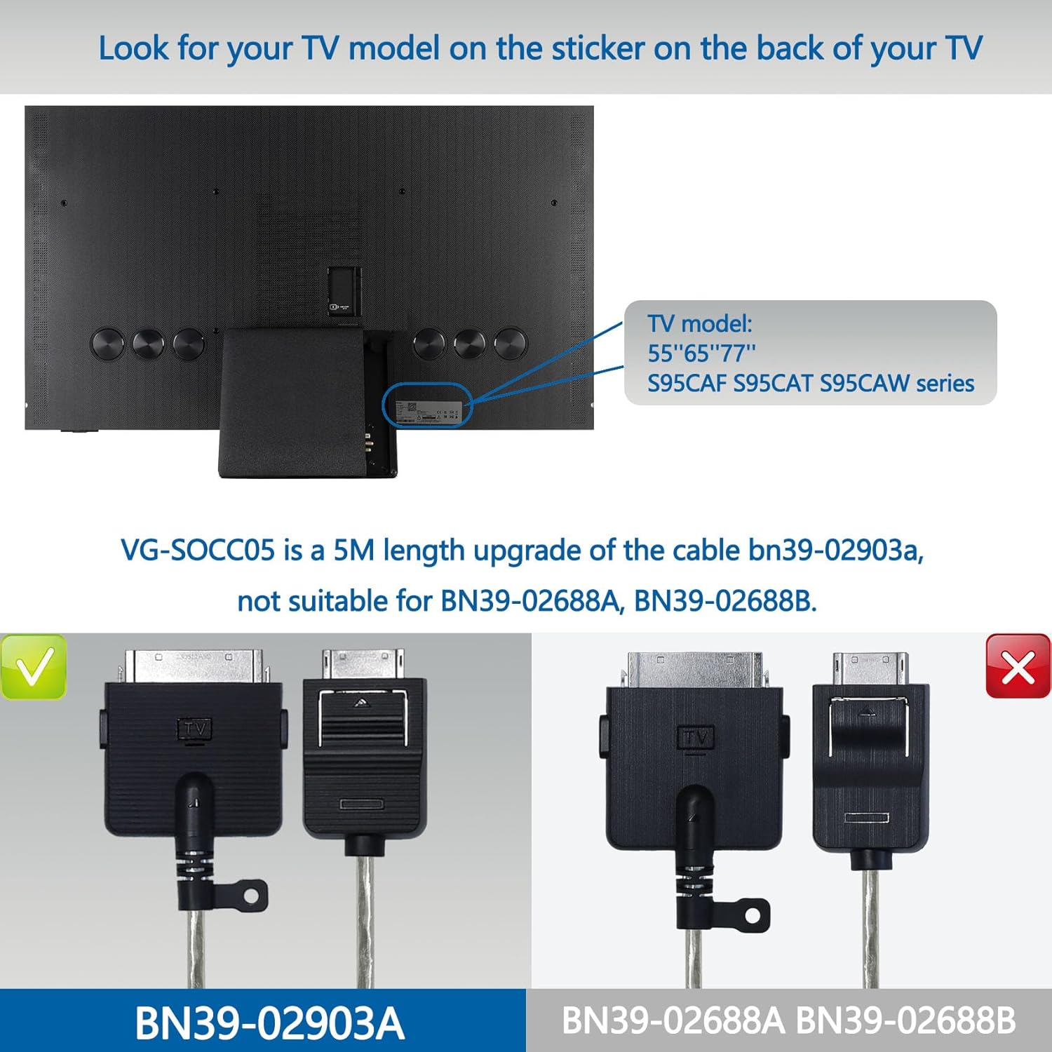 【Compatible TV models】: QN55S95CAFXZA、QN65S95CAFXZA、QN77S95CAFXZA QN65S95CAW、QN55S95CAW、QA55S95CAWXY、QA65S95CAWXXY、QA77S95CAWXXY、QN55S95CAT、QN65S95CAT、QN77S95CAT(Not all TVs can use our cables, BN39-02903A OEM the cables are only compatible with those models we list)