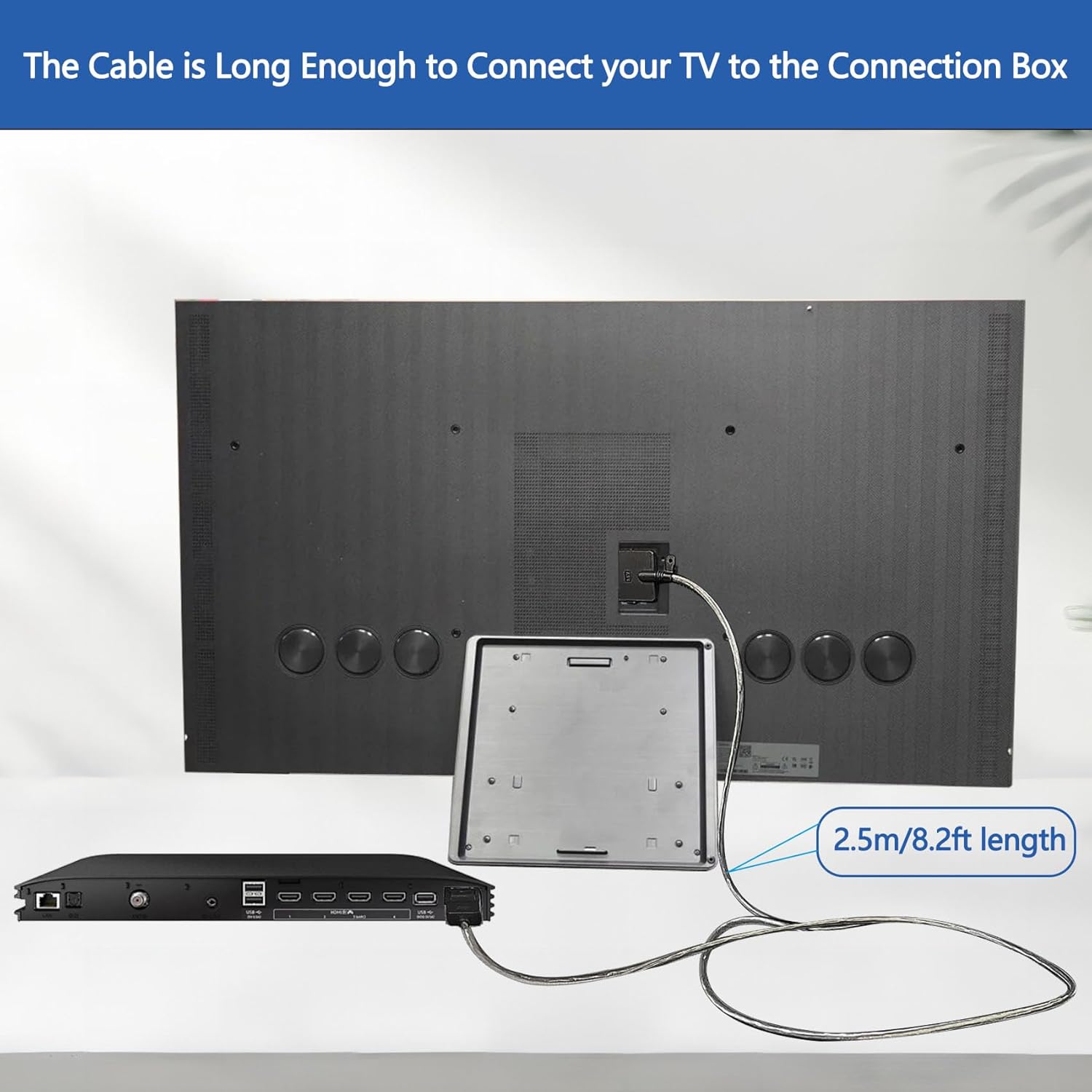 【Cable Length】: Length 2.5m /8.2ft.The two plugs have different shapes. Please refer to our pictures for the plug and connection box interface shapes.