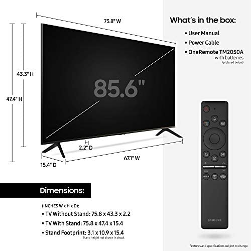 SAMSUNG 86-Inch Class Crystal UHD TU9000 Series – 4K UHD HDR Smart TV with Alexa Built-in (UN86TU9000FXZA)