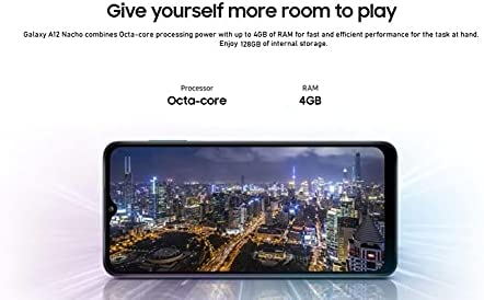 More display means more room to play: Expand your view to the 6.5-inch Infinity-V Display of Galaxy A12 Nacho and see what you’ve been missing. Thanks to HD+ technology, your everyday content looks sharp, crisp and clear. Upgrade your mobile photography with Quad Camera: Snap memorable moments in clear detail with the 48MP Main Camera. Expand the viewing angle with Ultra Wide Camera. Customize focus with Depth Camera, or get closer to the details with Macro Camera. Power that keeps you going: Stay ahead of the day with a battery that won’t slow you down. The 5,000mAh (typical) battery lets you keep doing what you do, for hours on end. And with up to 15W of Adaptive Fast Charging, Galaxy A12 Nacho quickly gets back to full power. Give yourself more room to play: Galaxy A12 Nacho combines Octa-core processing power with up to 4GB of RAM for fast and efficient performance for the task at hand.