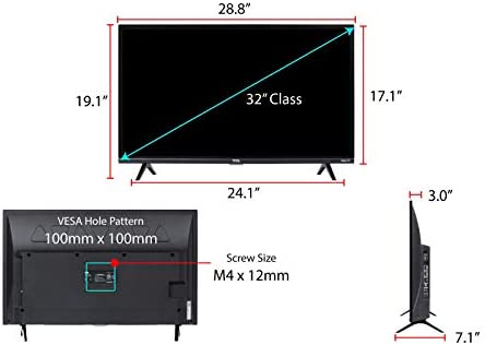 32-Inch class HD Roku Smart TV. Roku TV personalized home screen. Dual-band 802.11n wireless. 3 HDMI inputs, analog video input, USB port, digital and analog audio output. Digital television tuner. 1080P resolution. 60Hz CMI. USB File Format Compatibility : Video: MKV (H.264), MP4, MOV (H.264), TS (H.264) Music: AAC, MP3, WMA, WAV (PCM), AIFF, FLAC, AC3 Photo: JPG, PNG, GIF Wireless Connection : 802.11 2×2 Dual Band