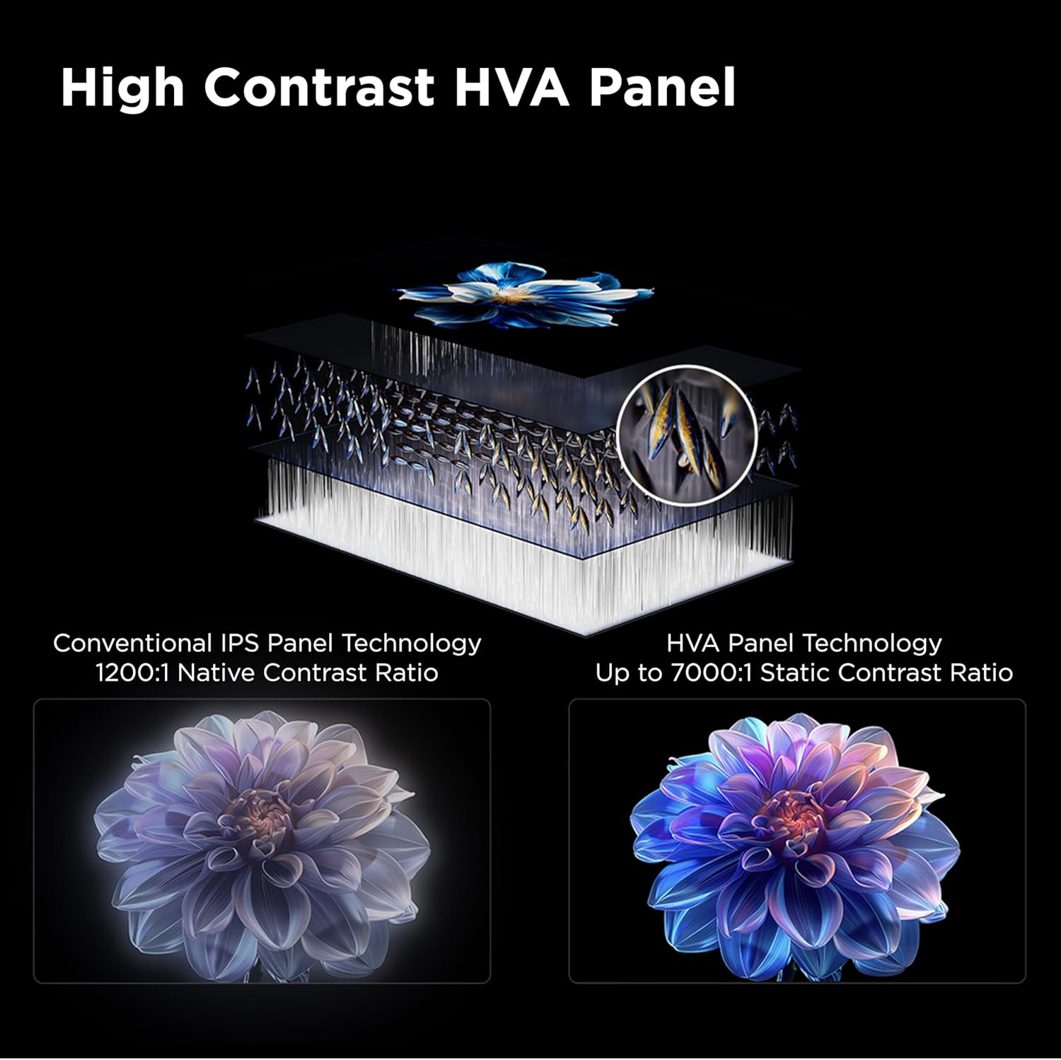 High Contrast HVA Panel (50”/55”/65”/75”) – TCL’s leading High Contrast HVA Panel technology provides incredible contrast for stunning pictures.